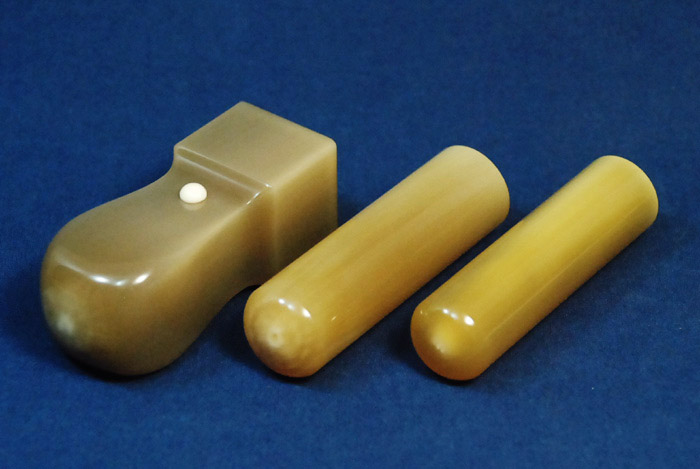 完全手彫り 印材は、牛の角の中心部(芯持ち)でまだらの無い白(純白)と言われる最高級印材です。