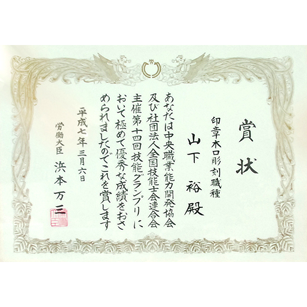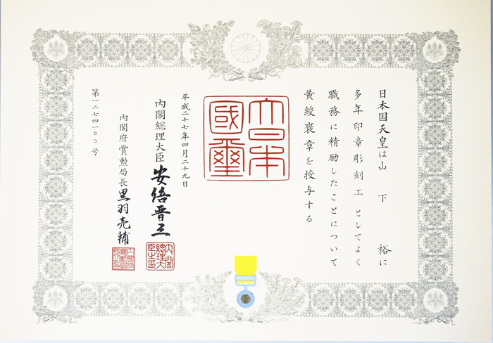 厚生労働大臣検定一級印章彫刻技能士 山下 裕 (やました ゆたか)